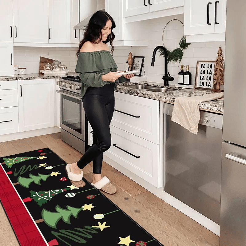 Enhance your holiday decor with a rug that captures the essence of Christmas. Perfect for under the kitchen sink or any area needing a festive touch, our rugs are an essential addition for those who cherish traditional holiday aesthetics.